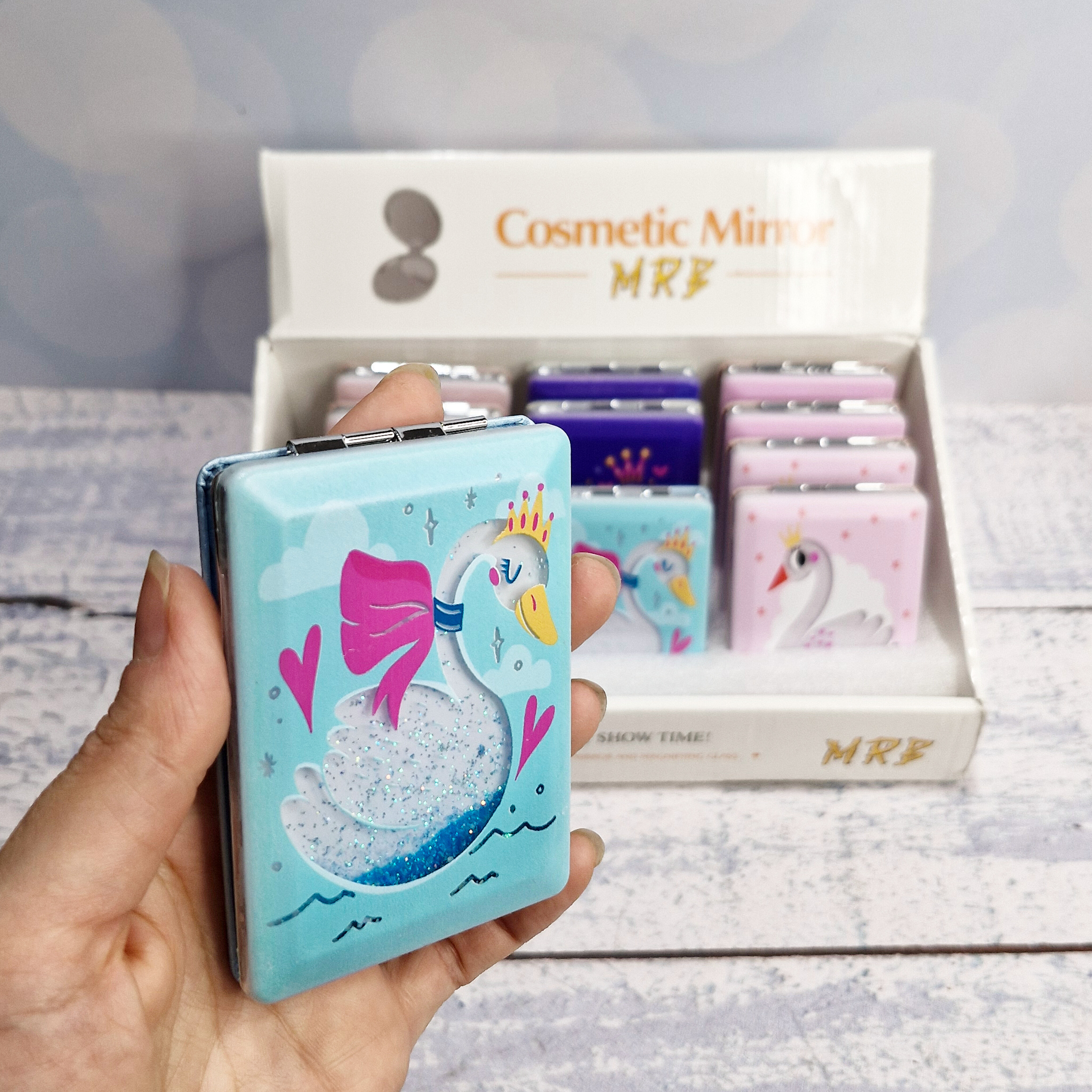 آینه جیبی وارداتی آکواریومی طرح قو دوقلو، با طراحی خاص و فانتزی، مناسب برای استفاده روزمره. سبک، قابل حمل و مقاوم. عرضه در بسته ۱۲ عددی، انتخابی عالی برای هدیه، فروشگاه لوازم آرایشی و مصرف شخصی.