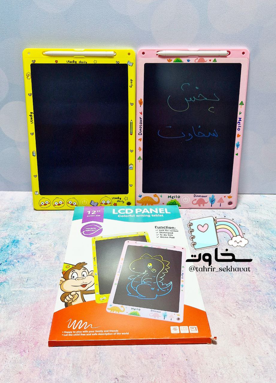 🩶 تبلت رنگی نویس ۱۲ اینچ طرحدار یک وسیله کاربردی و جذاب برای یادداشتبرداری، نقاشی و تمرین کودکان است. این تبلت با صفحه نمایش رنگی، طراحی فانتزی و ابعاد مناسب، هم برای سرگرمی کودکان و هم برای استفاده آموزشی بسیار کاربردی است. سبک، کممصرف و قابل حمل که جایگزینی مناسب برای کاغذ محسوب میشود. 🩶