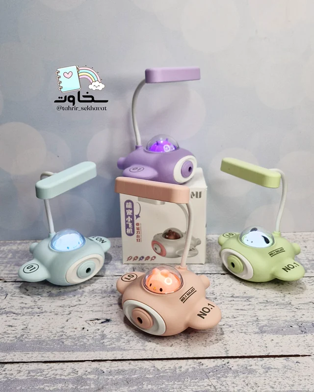 چراغ مطالعه شارژی با طرح هواپیما از مجموعه کرومی و دوستان، مجهز به تراشدار برای سهولت استفاده. این چراغ زیبا و کاربردی، مناسب فضای مطالعه و کار است. حداقل سفارش ۶ عدد میباشد.