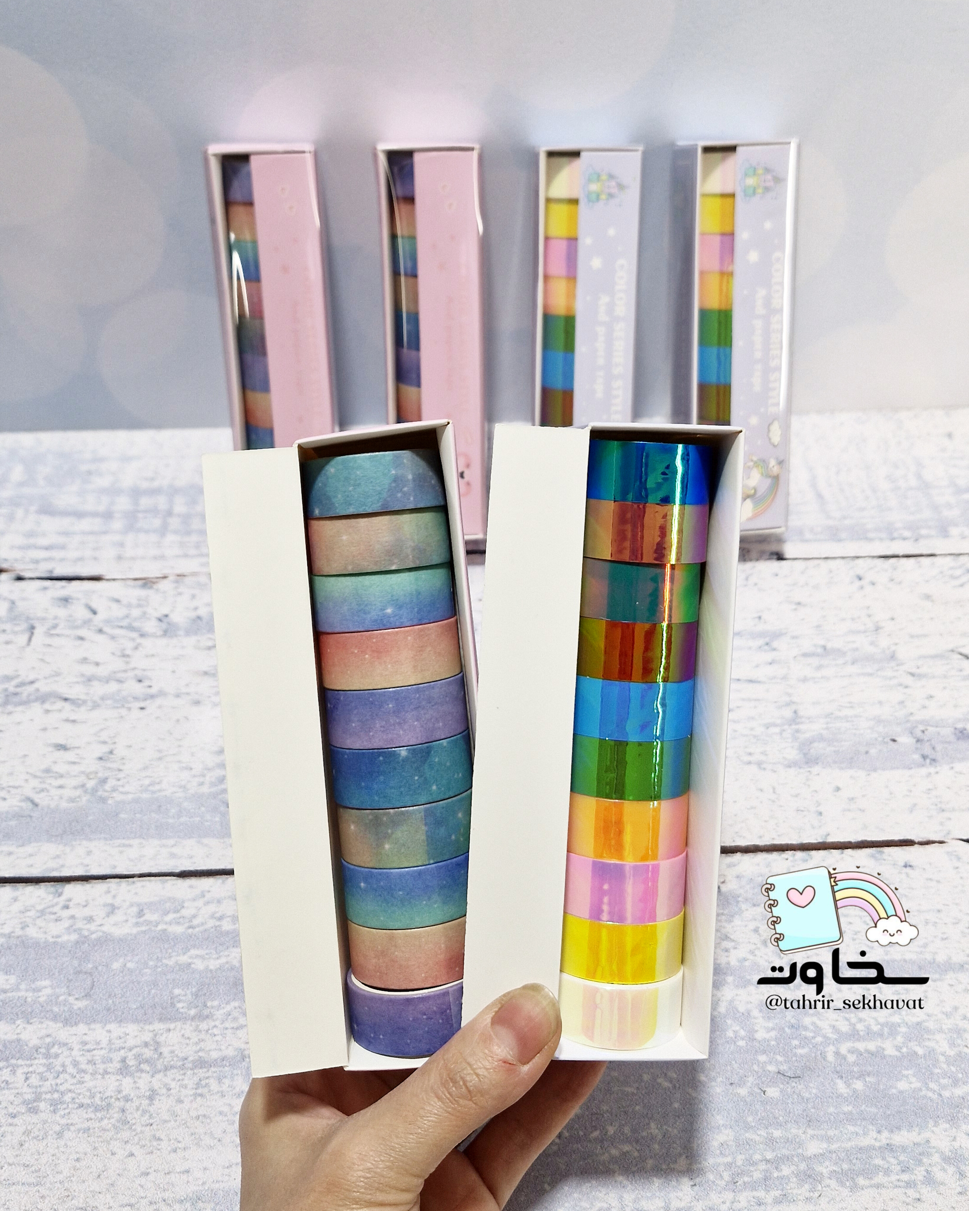 چسب واشی رنگی با دو طیف رنگ جذاب، مناسب تزیین دفتر، کارتها، بستهبندی هدیه و پروژههای خلاقانه. هر بسته شامل ۱۰ حلقه چسب با کیفیت چاپ بالا و چسبندگی مناسب است و فروش به صورت باکس ۱۲ بستهای انجام میشود. امکان سفارش از طریق دایرکت، تلگرام و سایت تحریر سخاوت وجود دارد.
