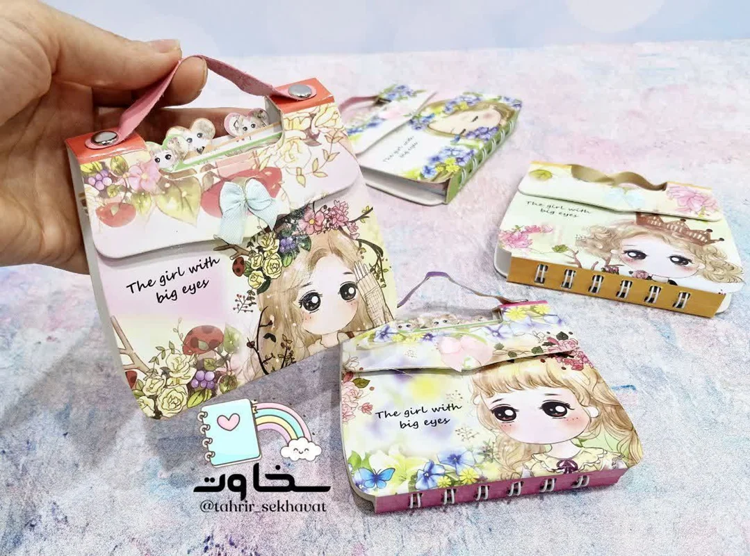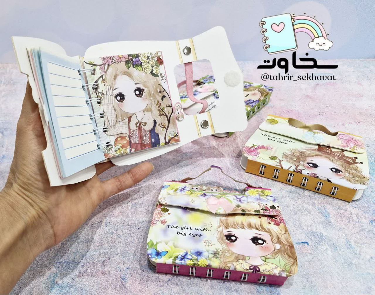 📒 دفترچه فانتزی کیفی طرح انیمه این دفترچه فانتزی با طراحی کیفمانند و صفحات طرحدار، تجربه نوشتن و یادداشتبرداری را جذاب و سرگرمکننده میکند. ✅ صفحات با طرحهای متنوع انیمهای ✅ طراحی کیفی خاص و فانتزی