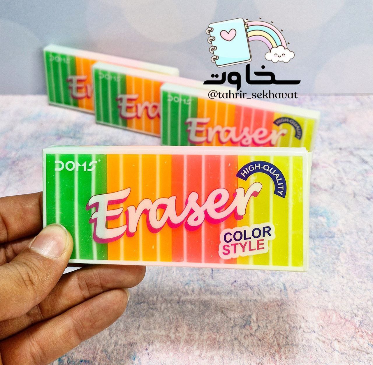 پاکن عطری Doms 📦 بسته ۴ عددی 🌸 دارای رایحه خوشبو 🎨 رنگهای شاد و جذاب ✅ کیفیت عالی و پاککنندگی قوی 👉 مناسب برای مدرسه، دفتر و استفاده روزانه