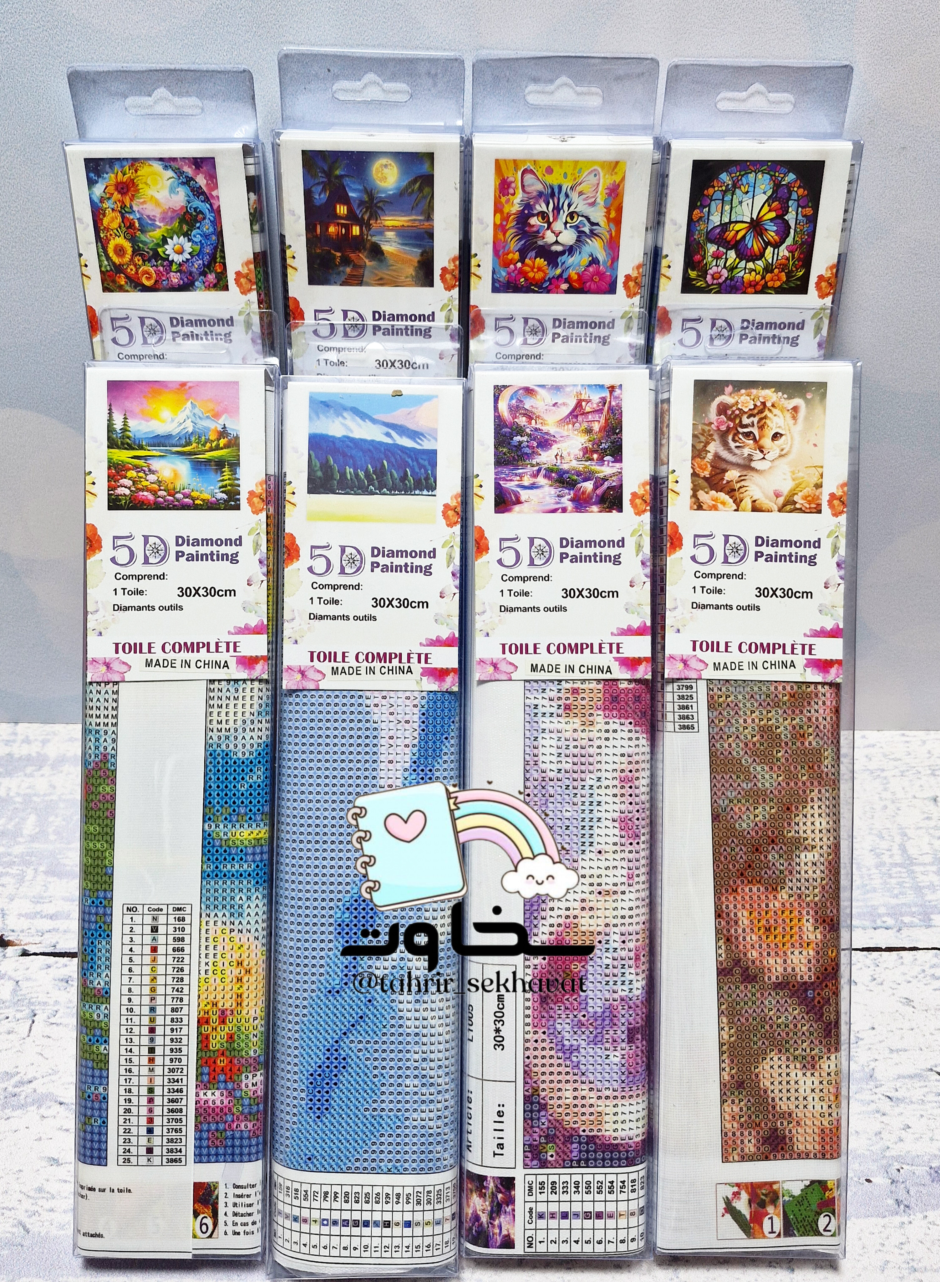 نقاشی الماسی بزرگسال سایز ۳۰×۳۰ با طراحیهای متنوع و کیفیت بالا، بهترین انتخاب برای سرگرمی، آرامش ذهن و تزئین منزل. بستهبندی ۱۶ عددی مناسب فروش عمده و مغازهها.