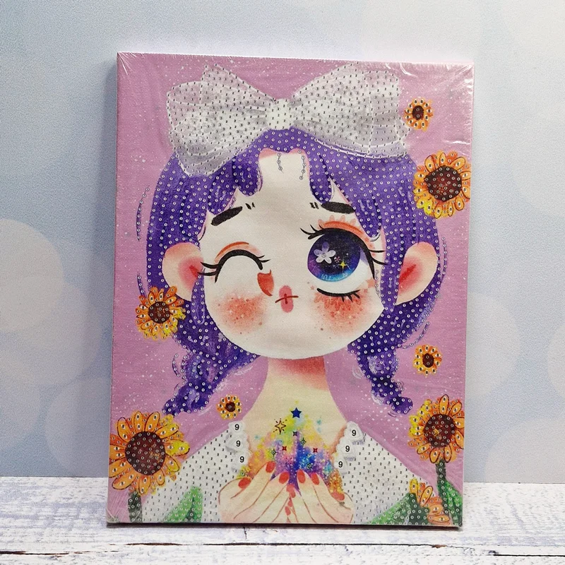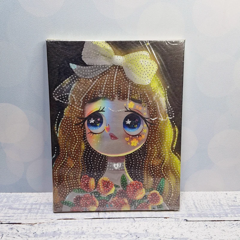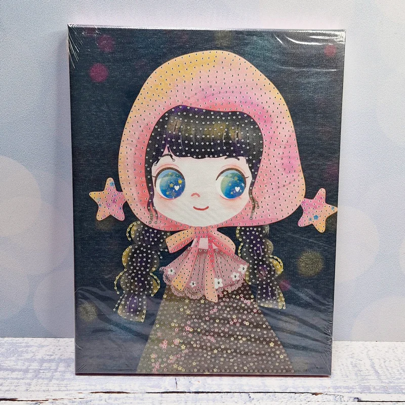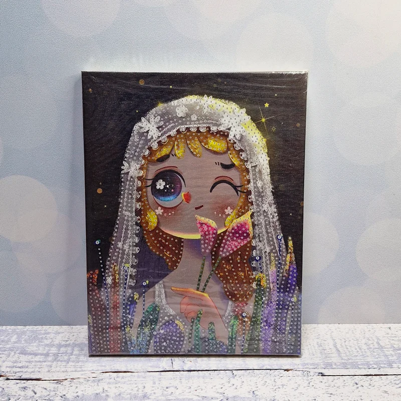 نقاشی الماسی با طرح های دخترخیال انگیز شامل بوم با طراحی فانتزی خاص ،همراه با نگین های درخشان برای چسباندن و شماره گذاری دقیق برای سهولت کار .