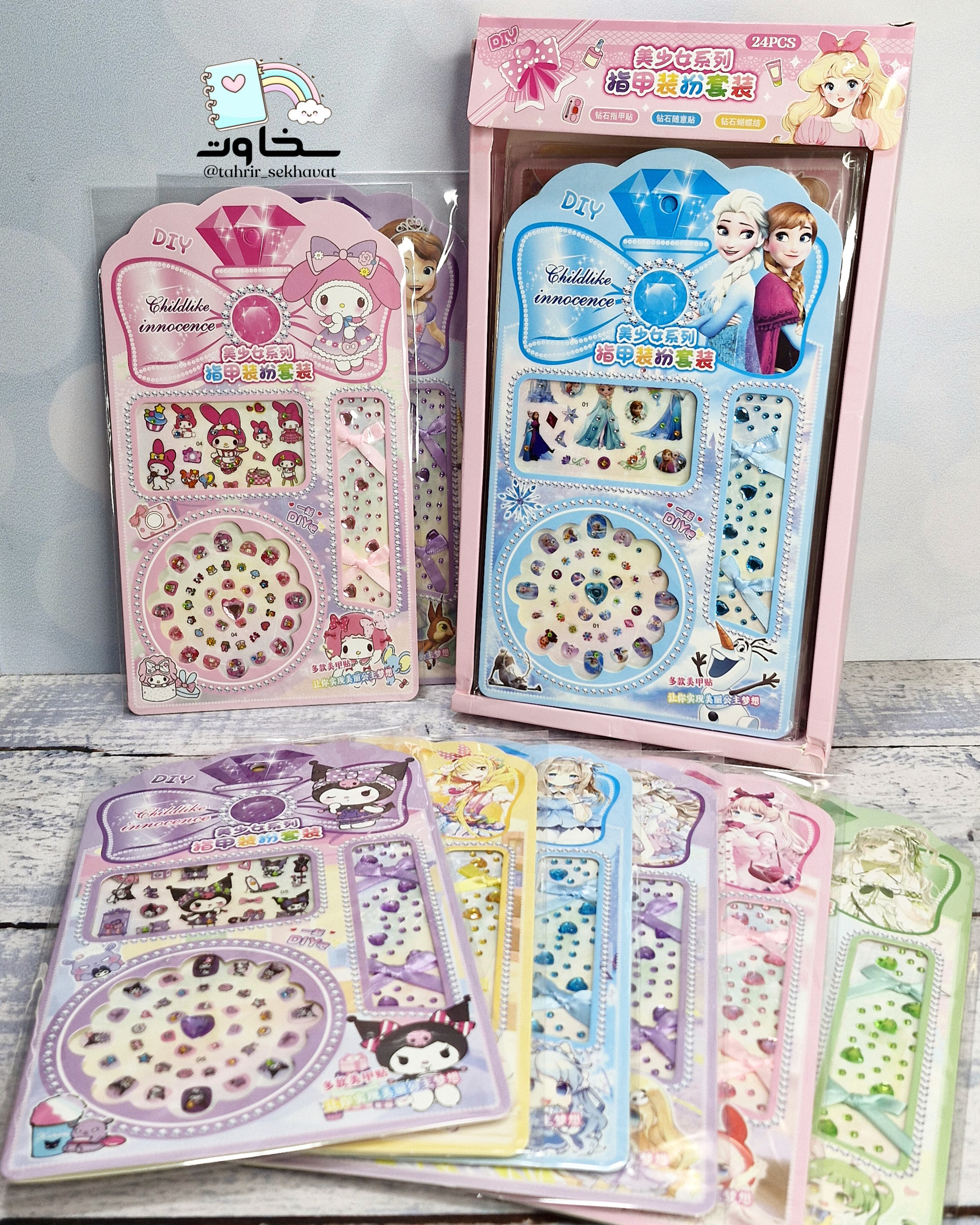 ست دیزاین ناخن فانتزی شامل ۲۴ عدد طرح متنوع و جذاب. مناسب زیباسازی ناخنها با رنگهای شاد و طرحهای خلاقانه. کیفیت خوب، کاربرد آسان و انتخابی مناسب برای افرادی که استایلهای فانتزی و متفاوت را میپسندند. امکان ثبت سفارش از طریق دایرکت، تلگرام و سایت تحریر سخاوت.
