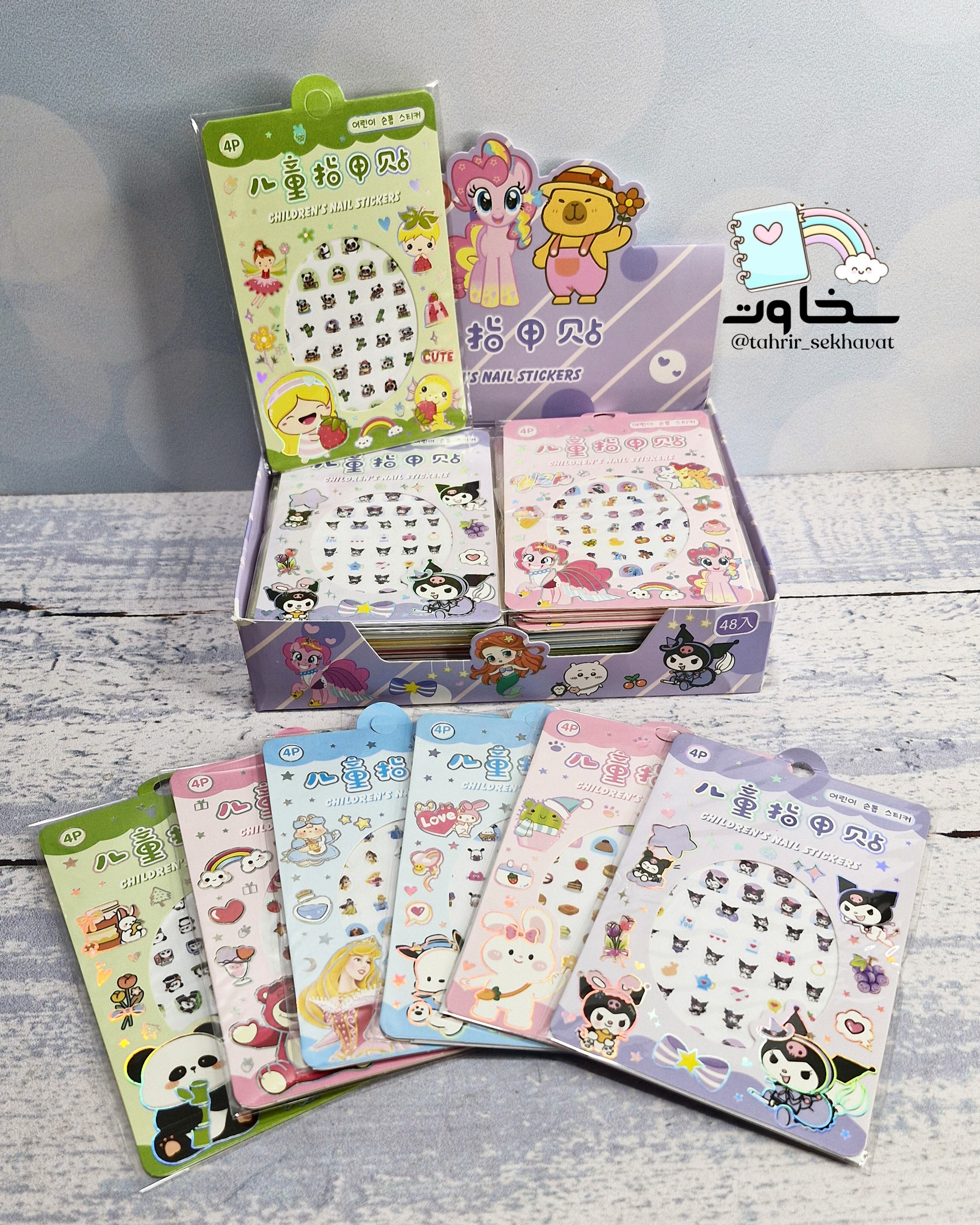 برچسب ناخن فانتزی ۴برگی با طرحهای متنوع و جذاب، مناسب زیباسازی سریع و آسان ناخنها. هر باکس شامل ۴۸ عدد برچسب با کیفیت چاپ خوب و کاربرد راحت برای ایجاد استایلهای فانتزی و متفاوت. قابل سفارش از طریق دایرکت، تلگرام و سایت تحریر سخاوت.