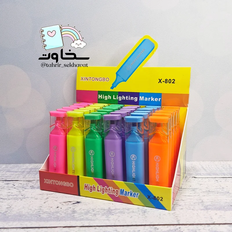 هایلایتر اداری با رنگهای فسفری و درخشان، مناسب استفاده در دفاتر، مدارس و محیطهای کاری. استند ۳۶ عددی با تنوع رنگی بالا و جوهر باکیفیت که سریع خشک میشود و نوک نرم برای علامتگذاری دقیق دارد.