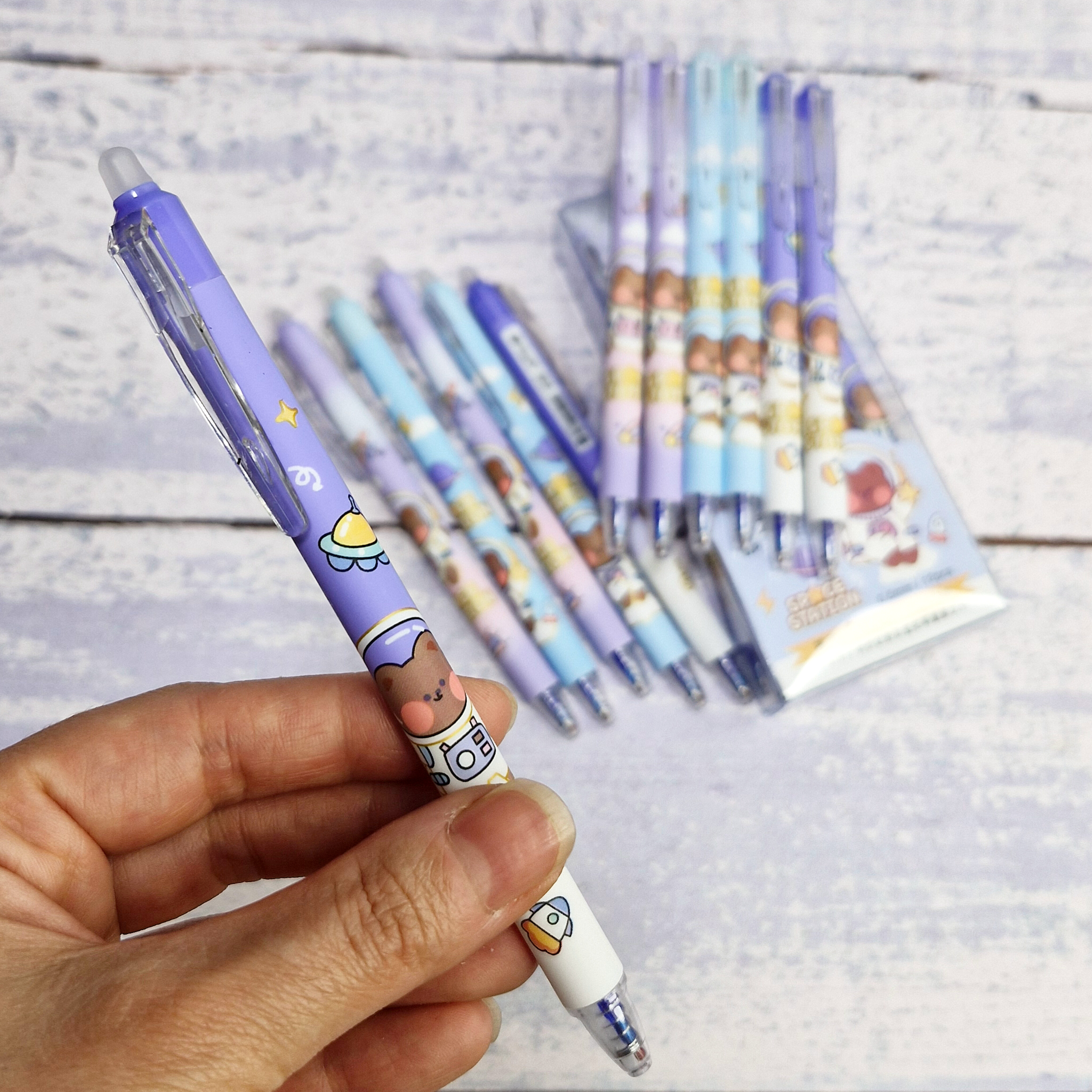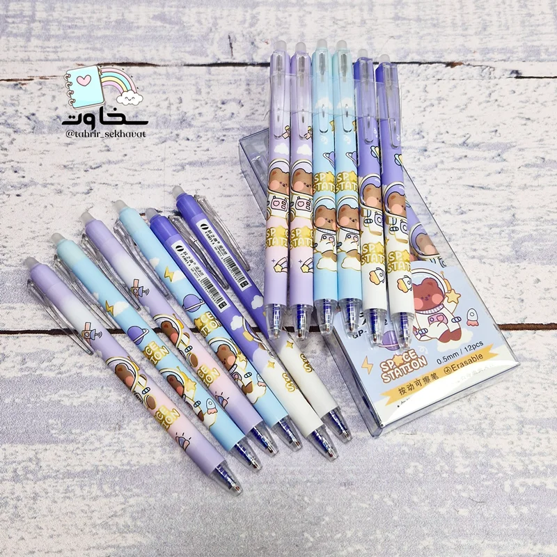 خودکار پاکن دار کلیکی خرس فضانورد، بسته ۲۴ عددی با طراحی بامزه و پاککن برای اصلاح سریع اشتباهات. مناسب مدرسه و دانشگاه.