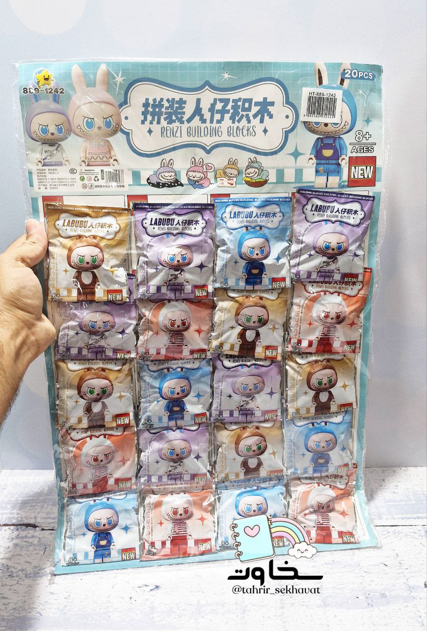 لگو طرح لبوبو با بستهبندی هر ورق شامل ۲۰ عدد لگو، مناسب کودکان و علاقهمندان به ساخت و ساز. حداقل سفارش ۳ ورق به صورت عمده.