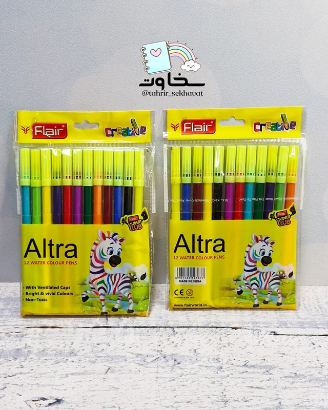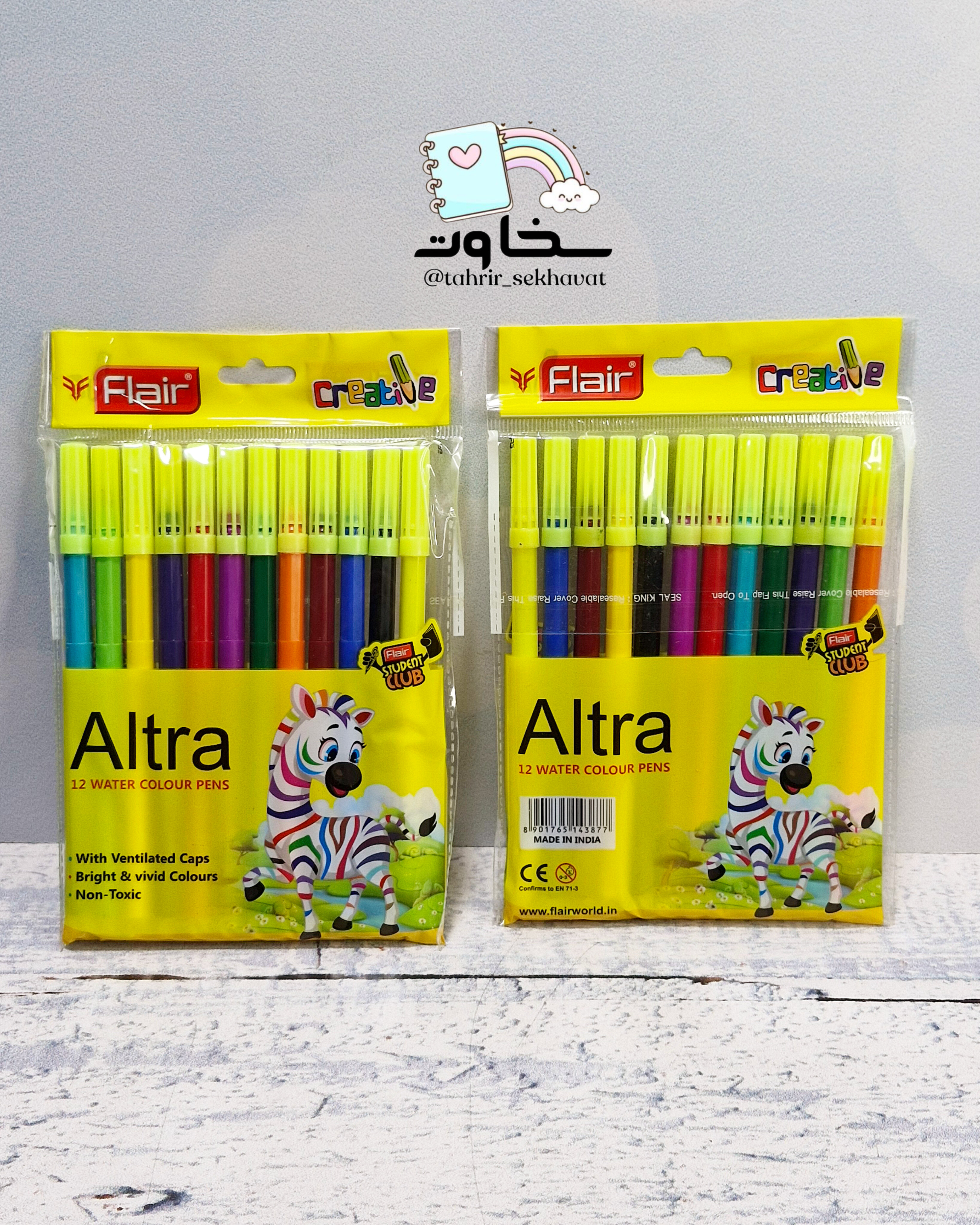 یک جعبه ۱۲ رنگ جذاب از ماژیکهای Flair مخصوص نقاشی و رنگآمیزی. کیفیت بالا، رنگهای شفاف و نوک روان و مقاوم. مناسب کودکان و دانش آموزان ساخته شده در هند.