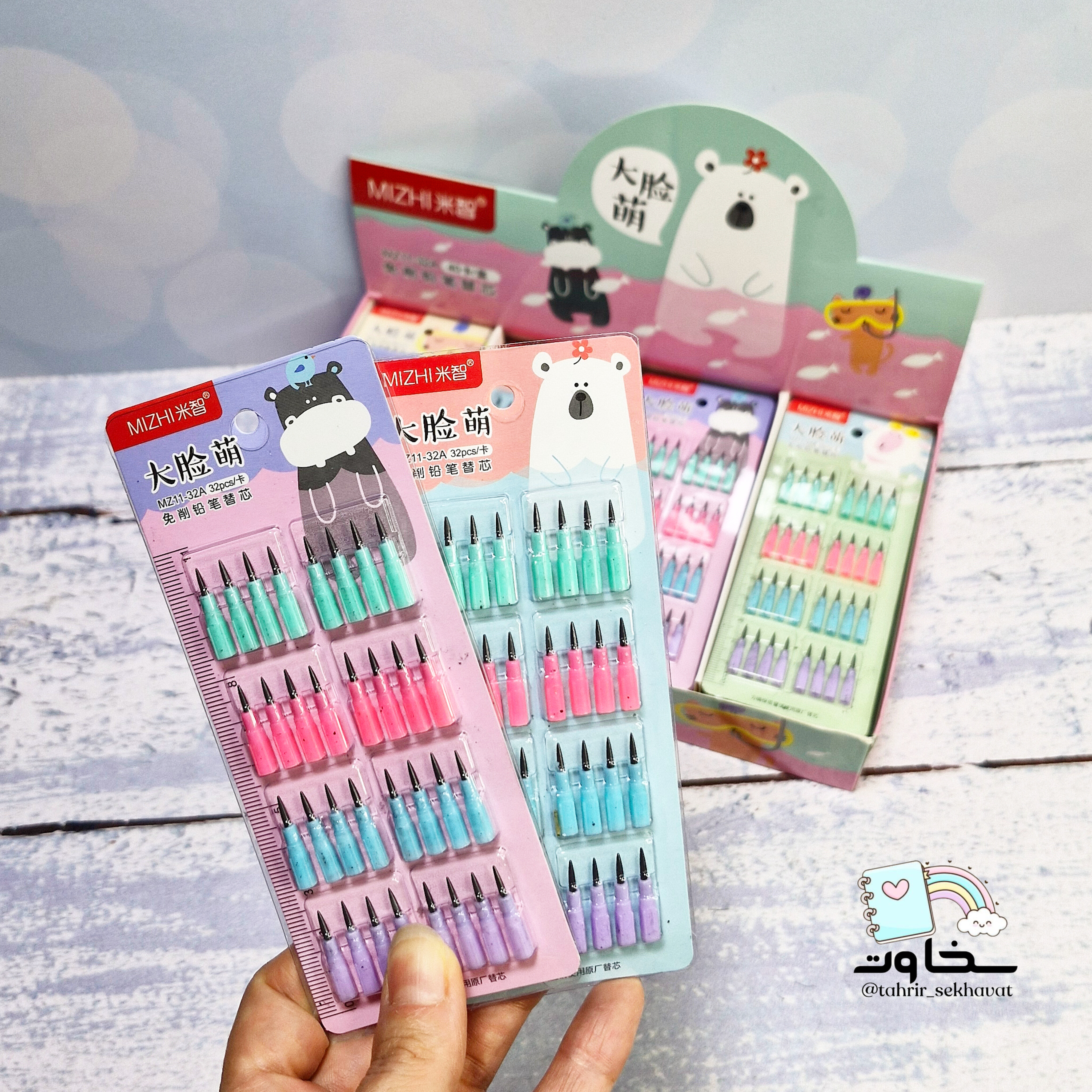 شامل 32 نوک مداد فشنگی در یک بسته، یک انتخاب عالی برای کسانی است که از مدادهای فشنگی استفاده میکنند و نیاز به نوکهای اضافی دارند. این یدکها با کیفیت بالا و طراحی مناسب، نوشتن و ترسیم را به تجربهای روان و بدون مشکل تبدیل میکنند.