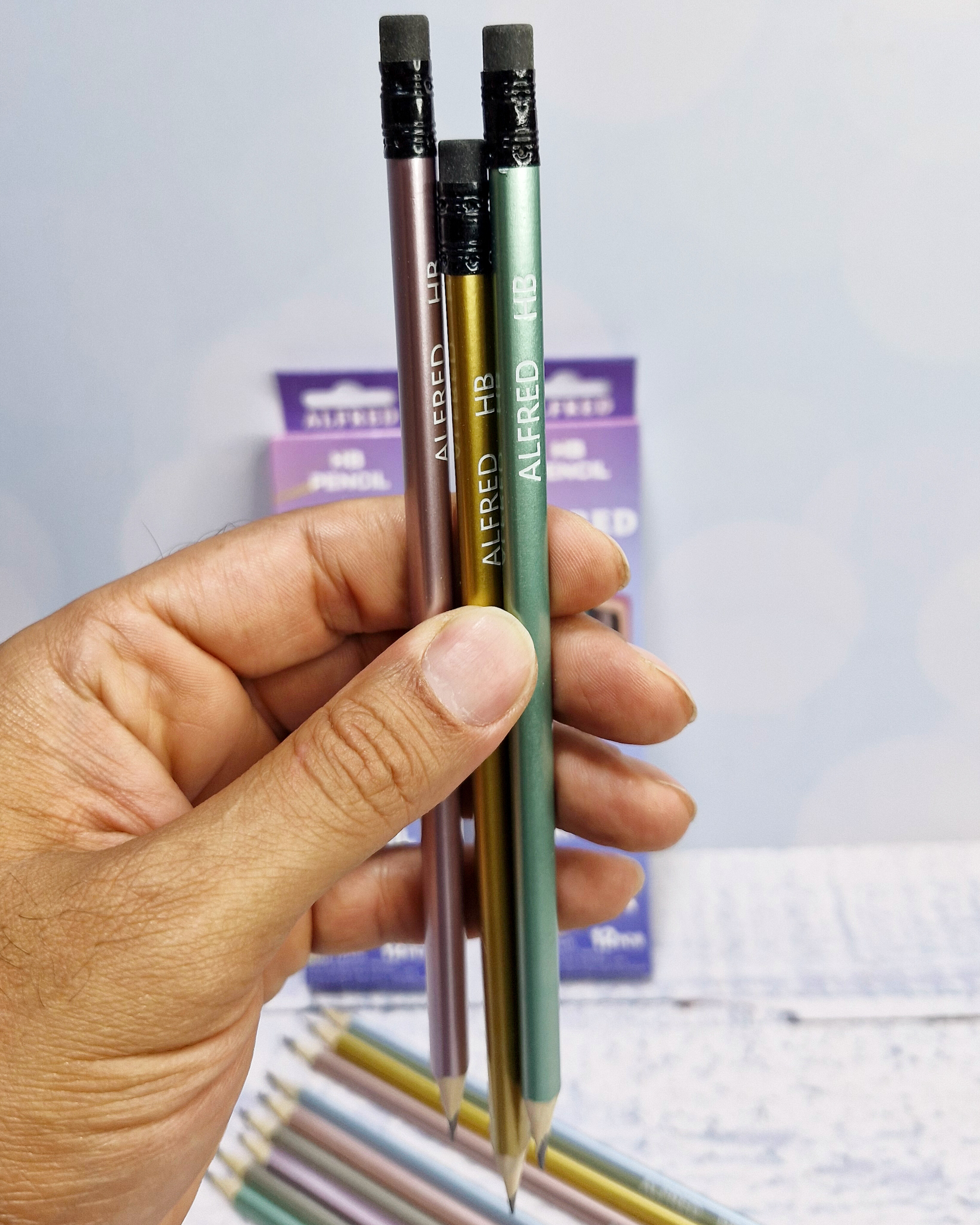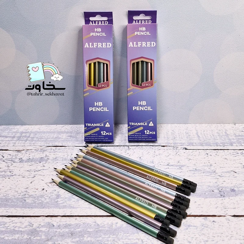 مداد مشکی ALFRED با طراحی بدنه مثلثی و رنگ متالیک، نوشتاری روان و زیبا را برای شما به ارمغان میآورد. این مداد دارای پاککن انتهایی بوده و برای استفاده روزانه در مدرسه، دانشگاه و محل کار بسیار کاربردی است. این محصول به صورت باکس ۱۲ بستهای عرضه میشود و انتخابی عالی برای خریداران عمده و فروشگاههای لوازمالتحریر است.