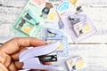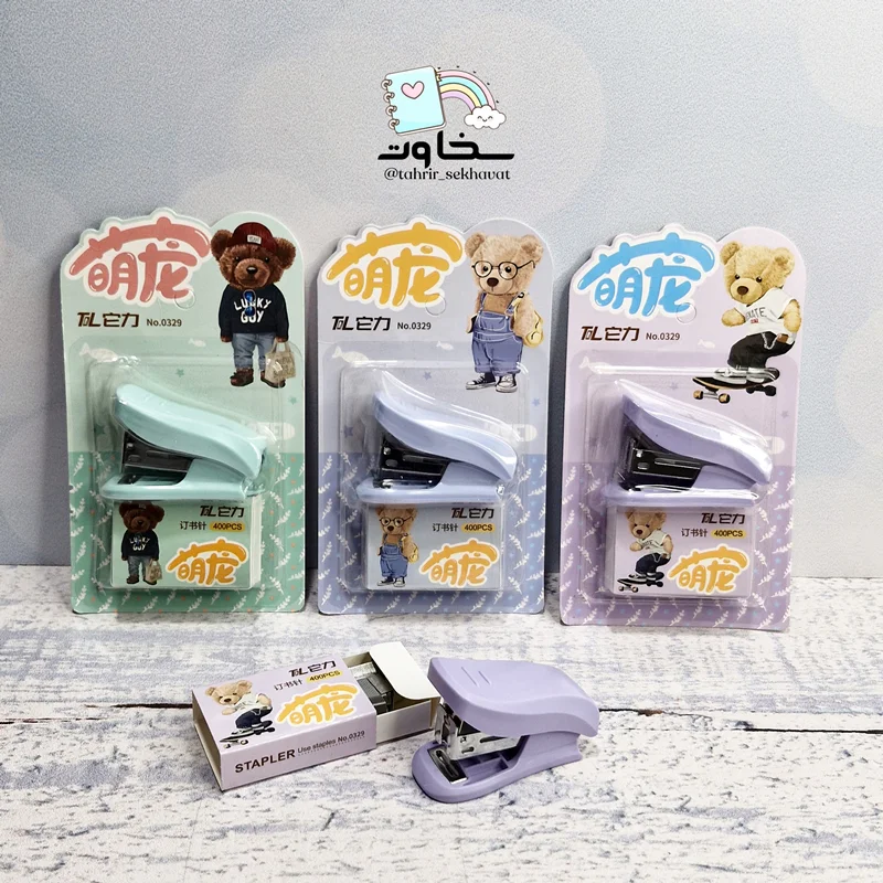 پک مینی منگنه و سوزن با طرح تدی، مناسب برای استفاده در مدرسه، دفتر و خانه. عرضه شده در بسته ۲۴ عددی با طراحی فانتزی و اندازه کوچک و کاربردی.