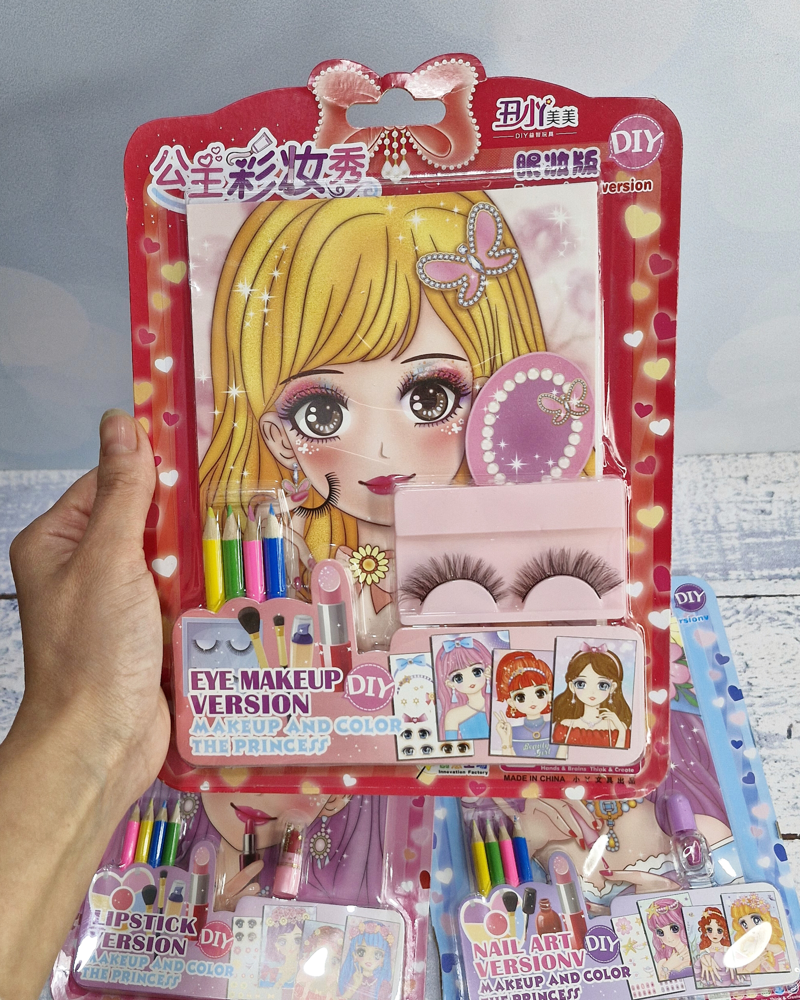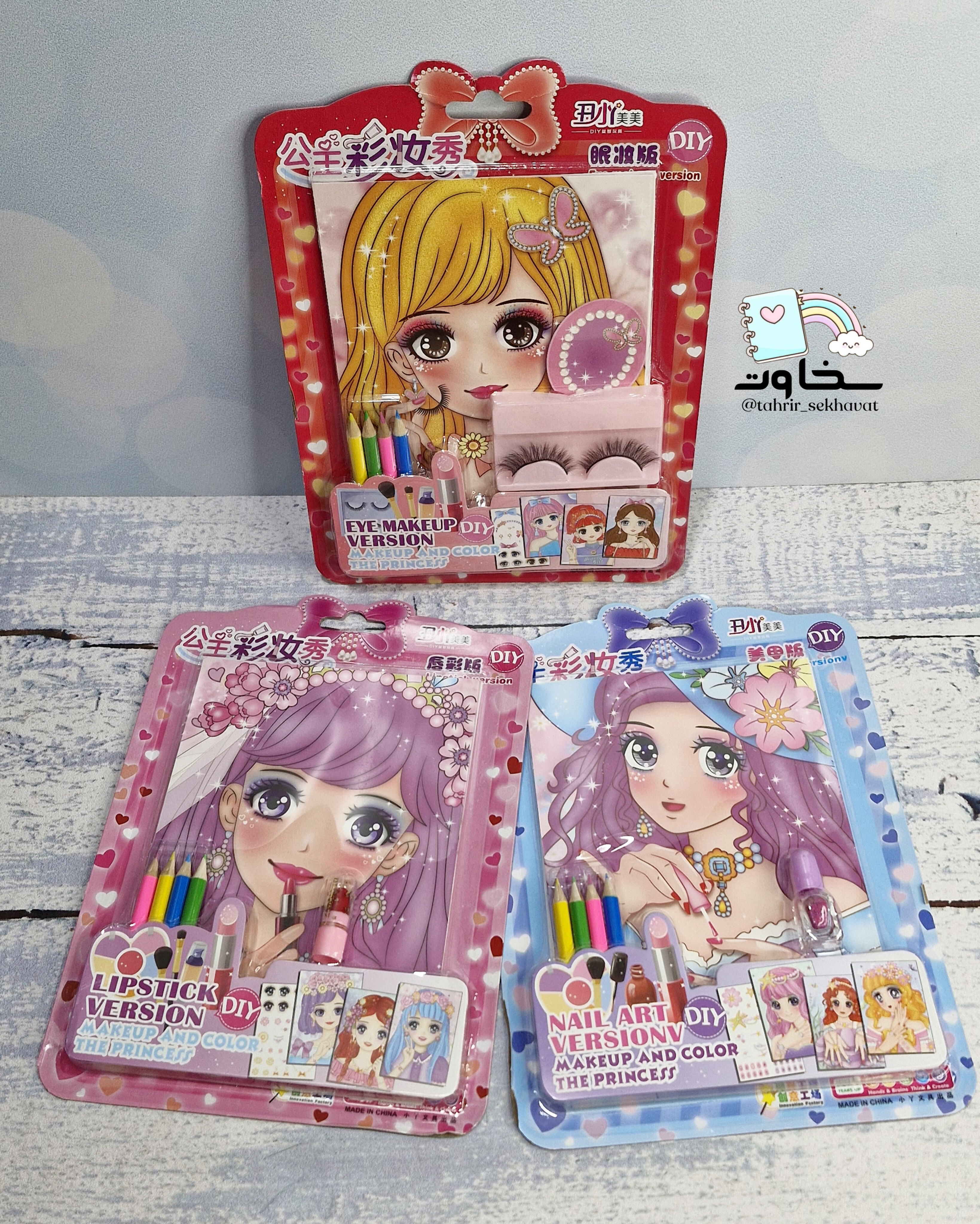 ست آرایشی پرنسس شامل ۳ برگ چهره، ۱ برگ برچسب، مژه، رژلب و لاک است. یک سرگرمی جالب و جذاب برای دخترها که میتوانند مهارتهای آرایشی و خلاقیت خود را تمرین کنند. مناسب برای بازی، هدیه و سرگرمی خلاقانه.