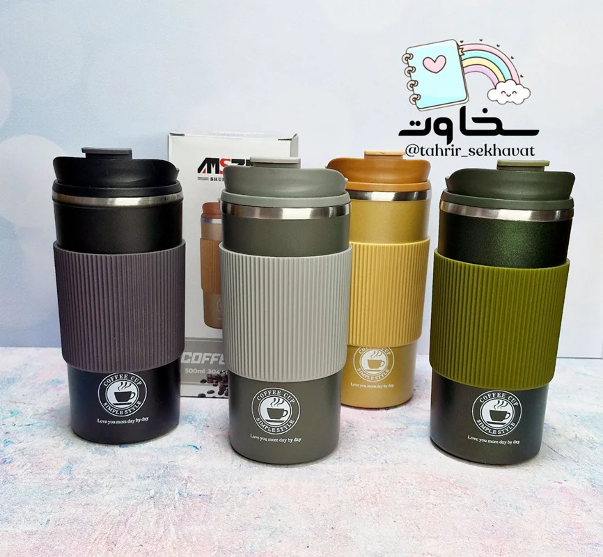 تراول ماگ دور سیلیکونی با کیفیت بالا استیل ۳۱۶یه محصول جذاب و رنگهای دلبر و گنجایش ۵۰۰میل