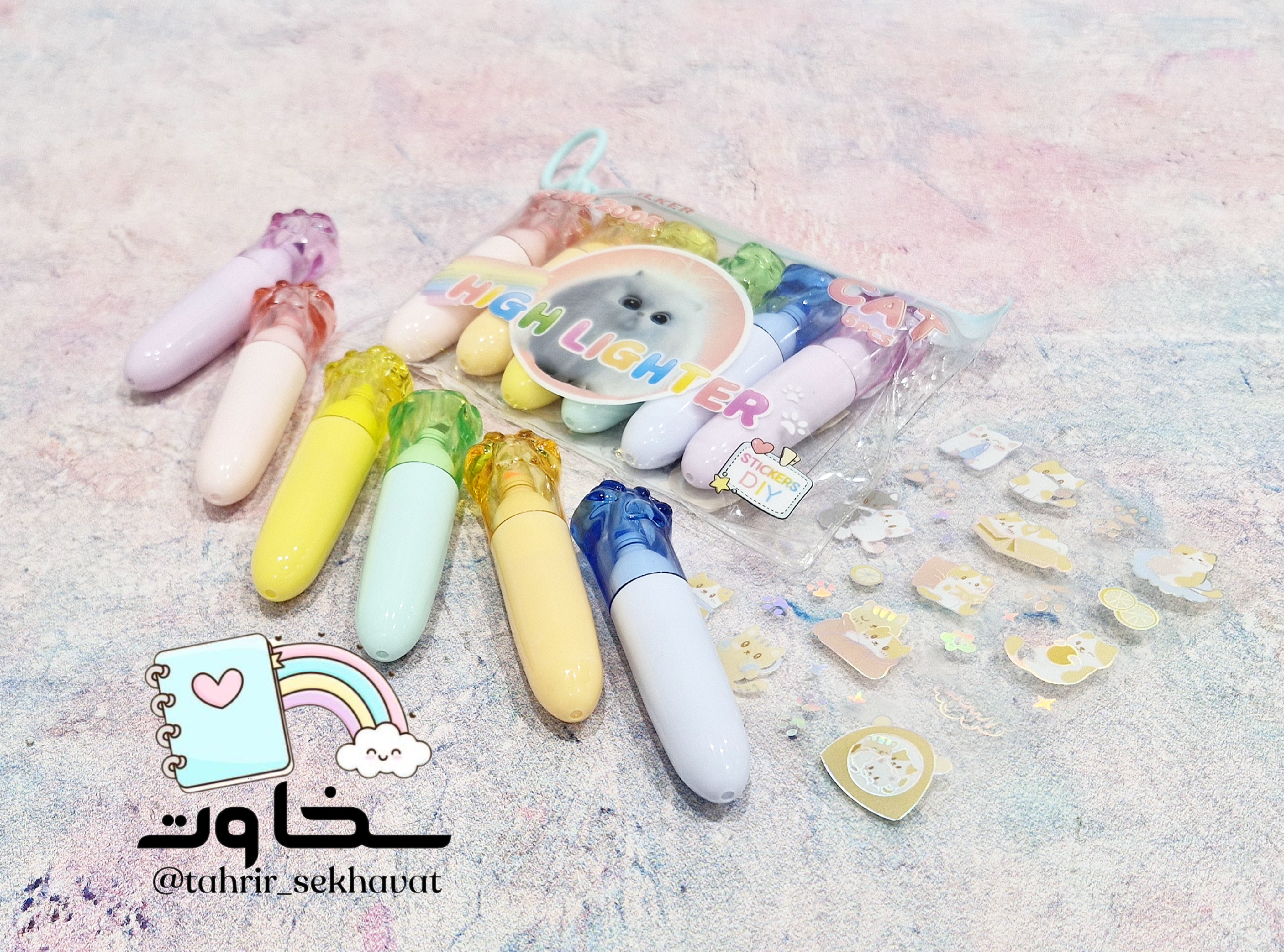 هایلایتر ۶رنگ که باهاش میتونید یادداشت های رنگی داشته باشید با طراحی خاص پنجه