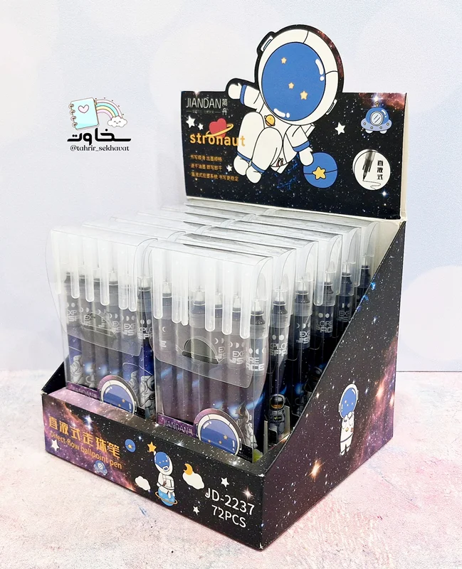 رواننویس جوهر مایع با طراحی فانتزی و جذاب فضانورد، برند JANDAN، با ضخامت نوک ۵ دهم برای نوشتاری نرم و روان. این محصول انتخابی خاص برای علاقهمندان به نوشتافزارهای خلاقانه است. بسته شامل ۳۶ عدد رواننویس با جوهر مشکی باکیفیت میباشد، مناسب استفاده در مدرسه، محل کار یا هدیه دادن.