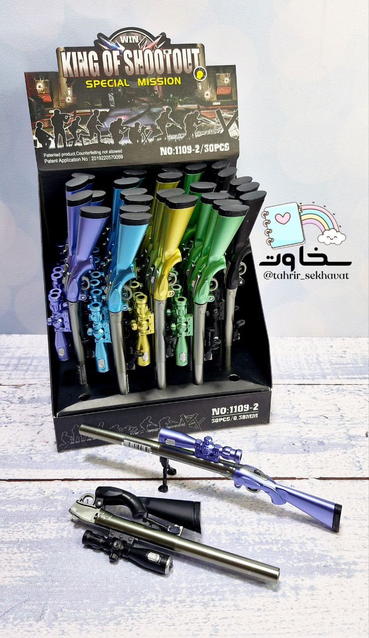 🖊️ رواننویس فانتزی تفنگ چراغدار تاشو این رواننویس با طراحی تفنگ تاشو و چراغ LED جذاب، نوشتن را هیجانانگیز و متفاوت میکند. ✅ نوک نرم و جوهر روان ✅ موجود در ۵ رنگ جذاب ✅ بستهبندی استند ۳۰ عددی