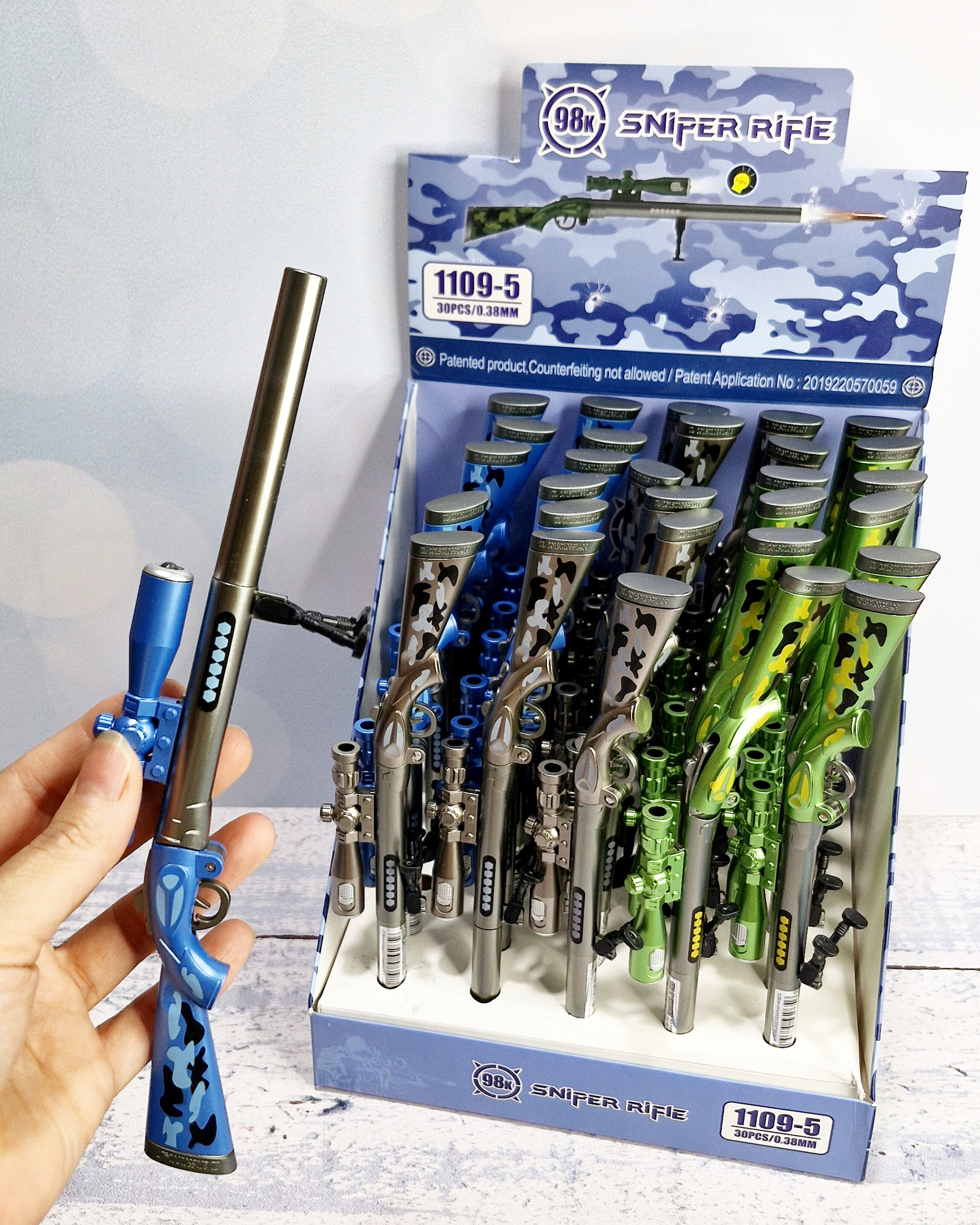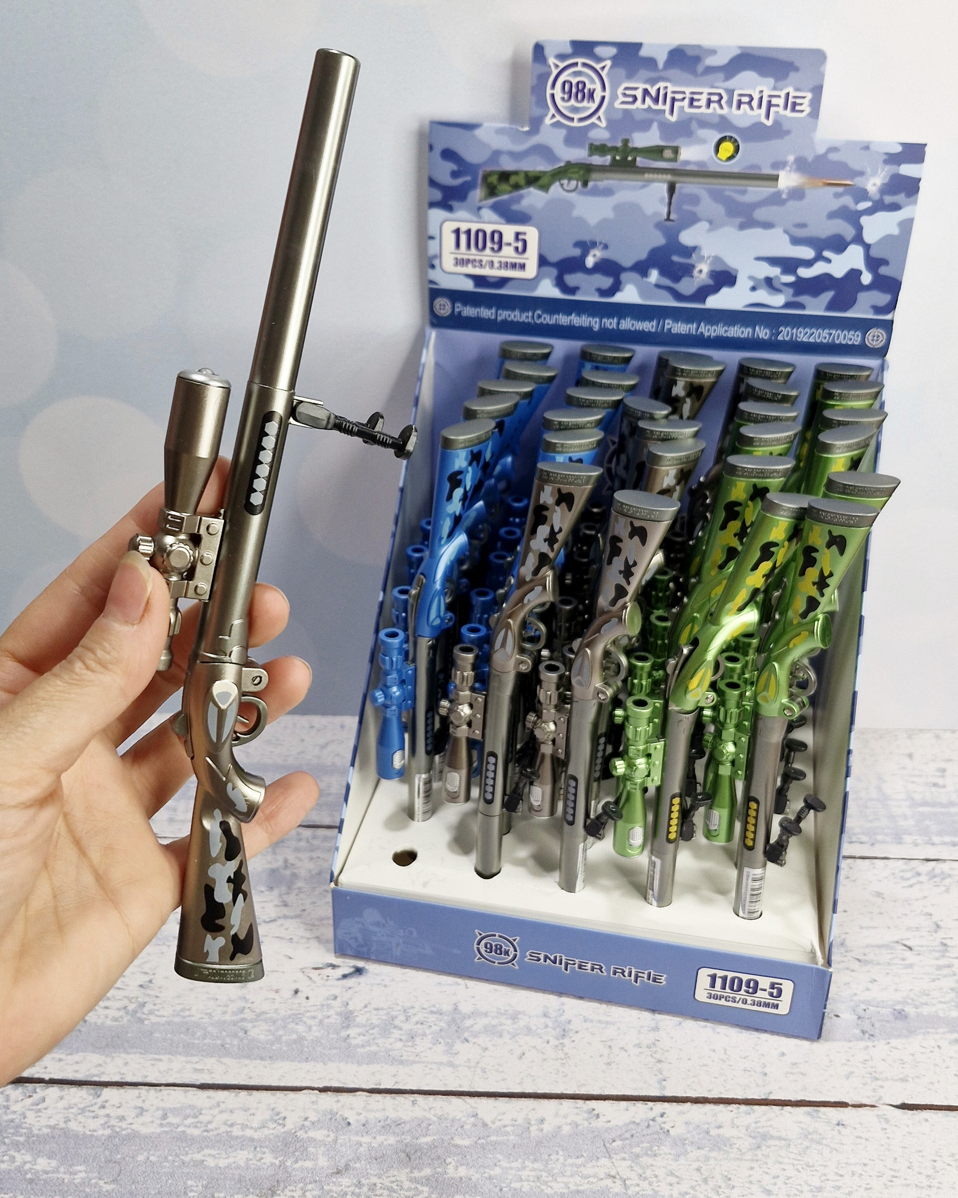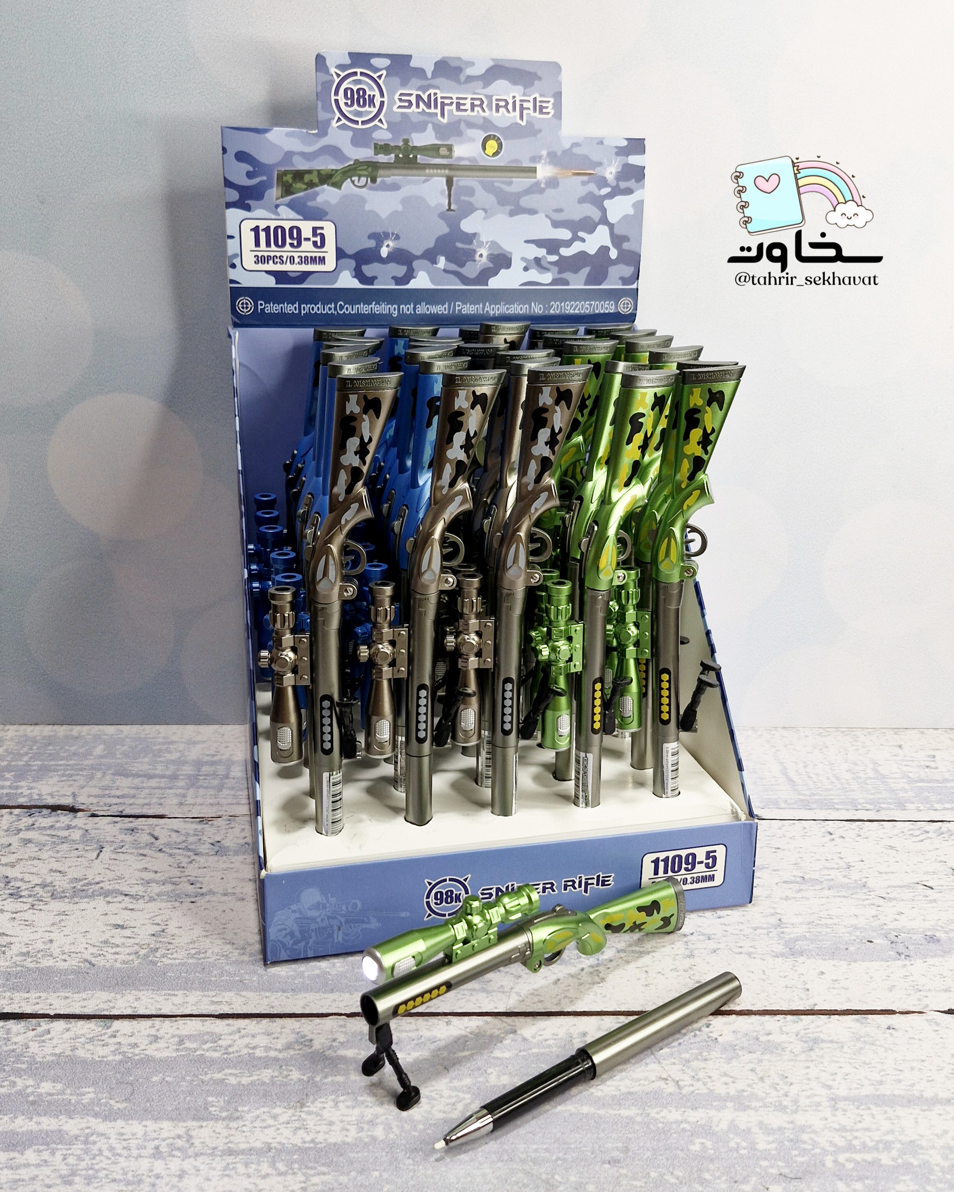 🖊️ رواننویس فانتزی تفنگ چراغدار تاشو این رواننویس با طراحی تفنگ تاشو و چراغ LED جذاب، نوشتن را هیجانانگیز و متفاوت میکند. ✅ نوک نرم و جوهر روان ✅ موجود در ۳ رنگ جذاب ✅ بستهبندی استند ۳۰ عددی