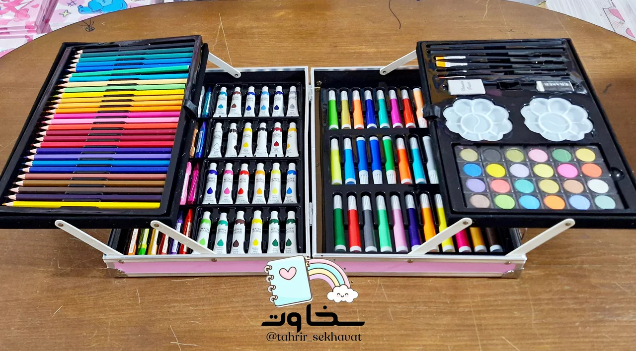ست هنری ۱۴۵ تکه چمدانی ۴طبقه، انتخابی عالی برای هنرجویان، کودکان و نوجوانان علاقهمند به نقاشی است. این مجموعه شامل مداد رنگی، ماژیک، آبرنگ، مداد شمعی، قلمو، پالت و ابزار طراحی بوده و در یک کیف مقاوم با طراحی زیبا و کاربردی قرار دارد. مناسب برای هدیه و استفاده در مدرسه یا خانه.