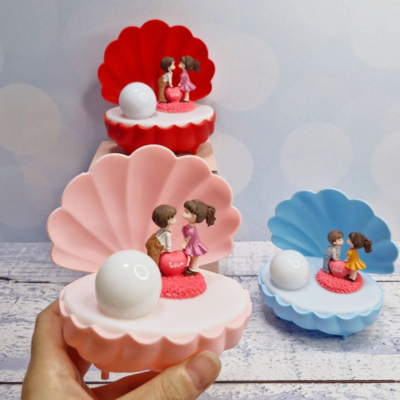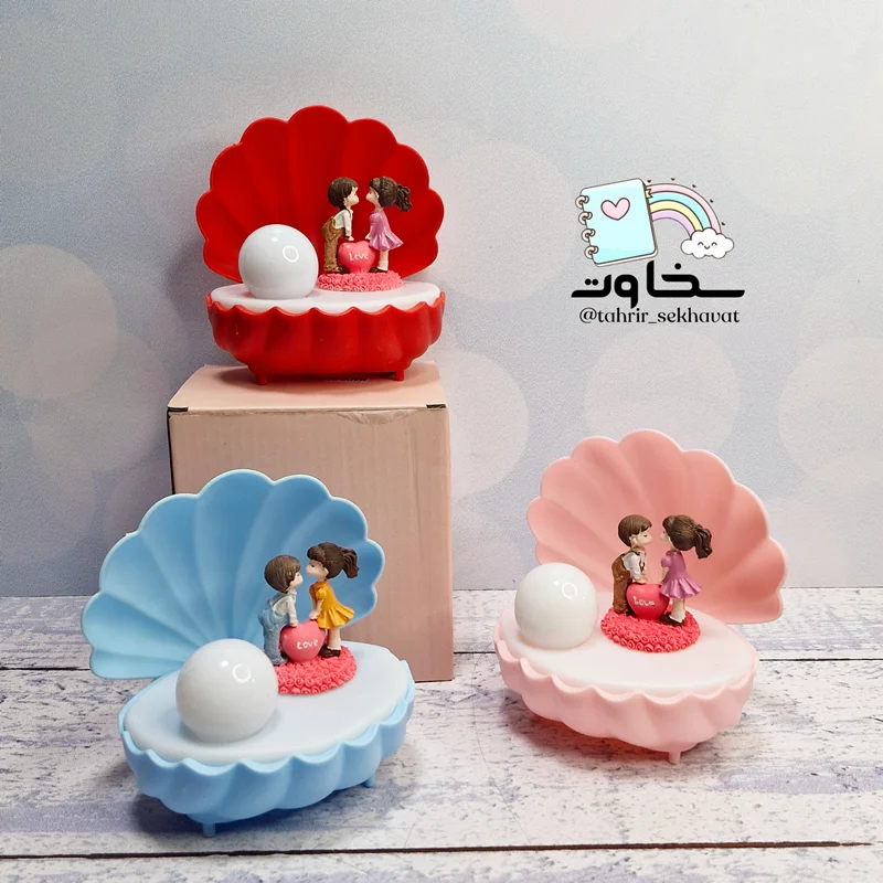 🩶 چراغ خواب صدفی با طراحی خاص که شامل یک مروارید روشن شونده کارکرد با باتری که داخلش و دو آدمک عاشقانه است، انتخابی رومیزی و رمانتیک برای دکوراسیون اتاق میباشد. نور ملایم و گرم آن فضایی آرام و دلنشین ایجاد میکند و جلوهای زیبا و فانتزی به محیط میبخشد. این چراغ مناسب برای هدیه، استفاده شخصی و دکوراسیون عاشقانه اتاق خواب است. 🩶