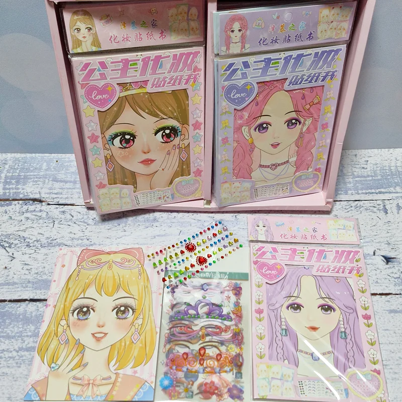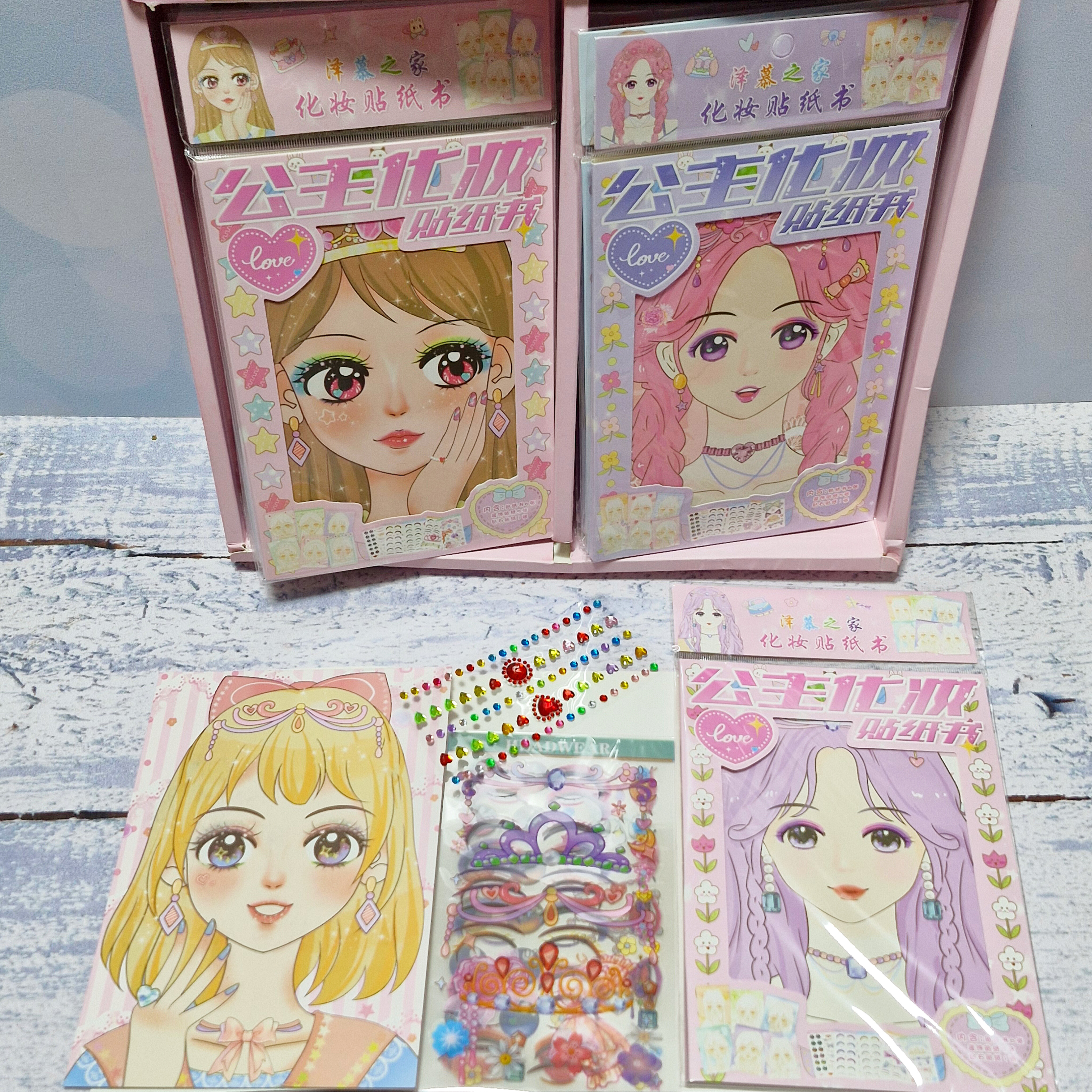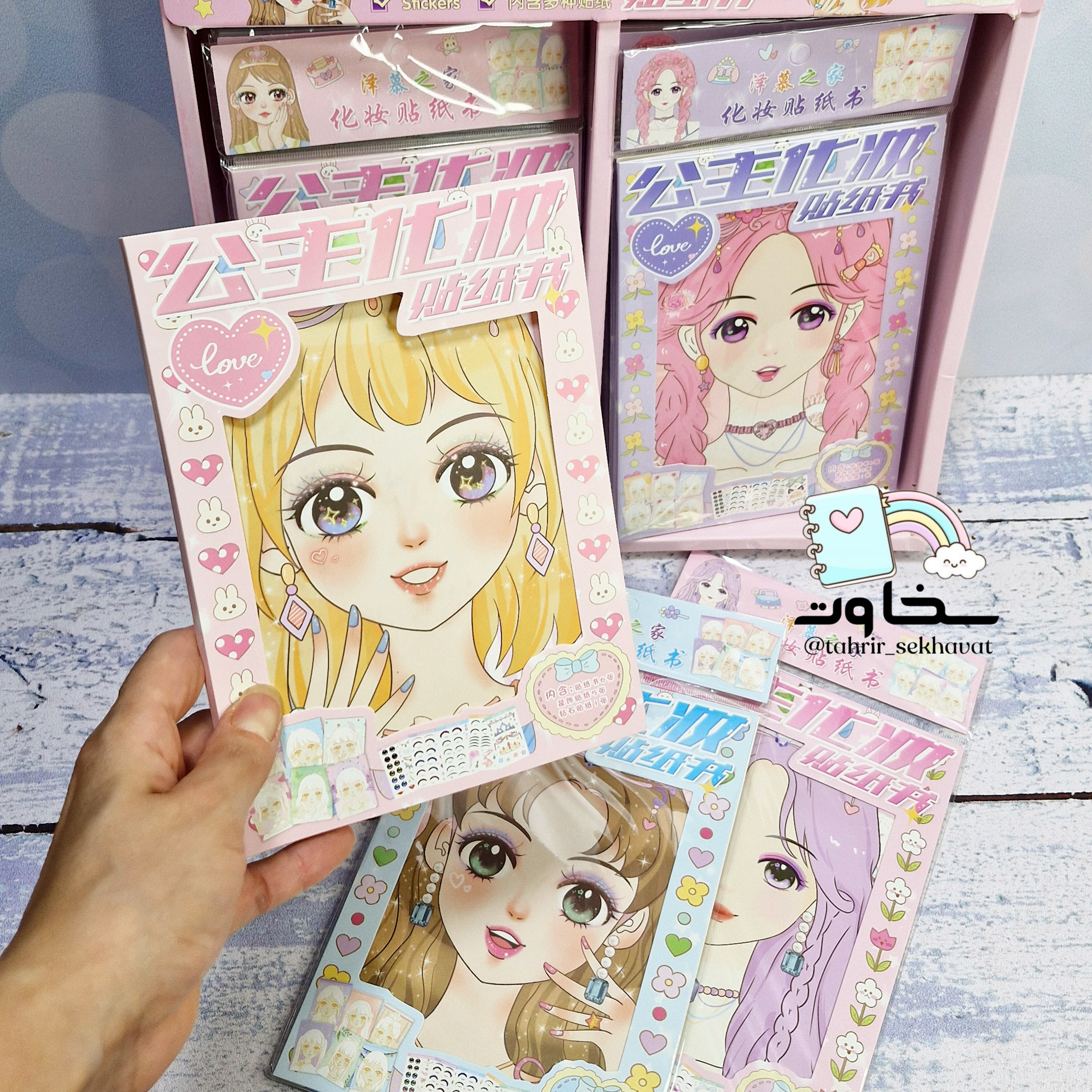 یه سرگرمی عالی برای اوغات فراغت هر پک شامل یه دفترچه هست که ۶تا دختر داره و ۶ورق استیکر آرایشی شامل مژه ،سایه چشم،لنز،رژ لب...که آرایشش میکنن.