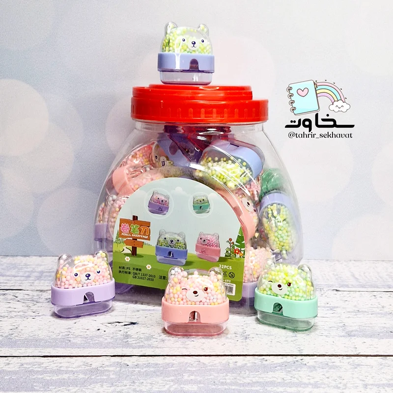 تراش فانتزی مخزندار با طرح دونه برفی، جذاب و کاربردی برای استفاده روزانه. موجود در بسته ۳۲ عددی مناسب خرید عمده.