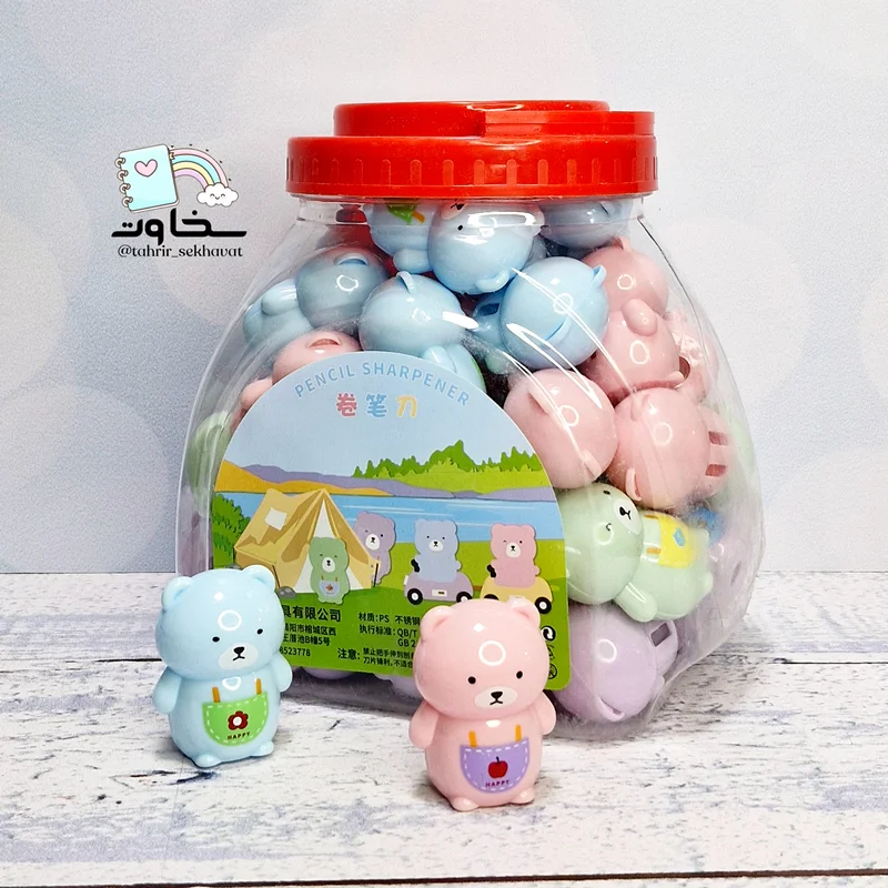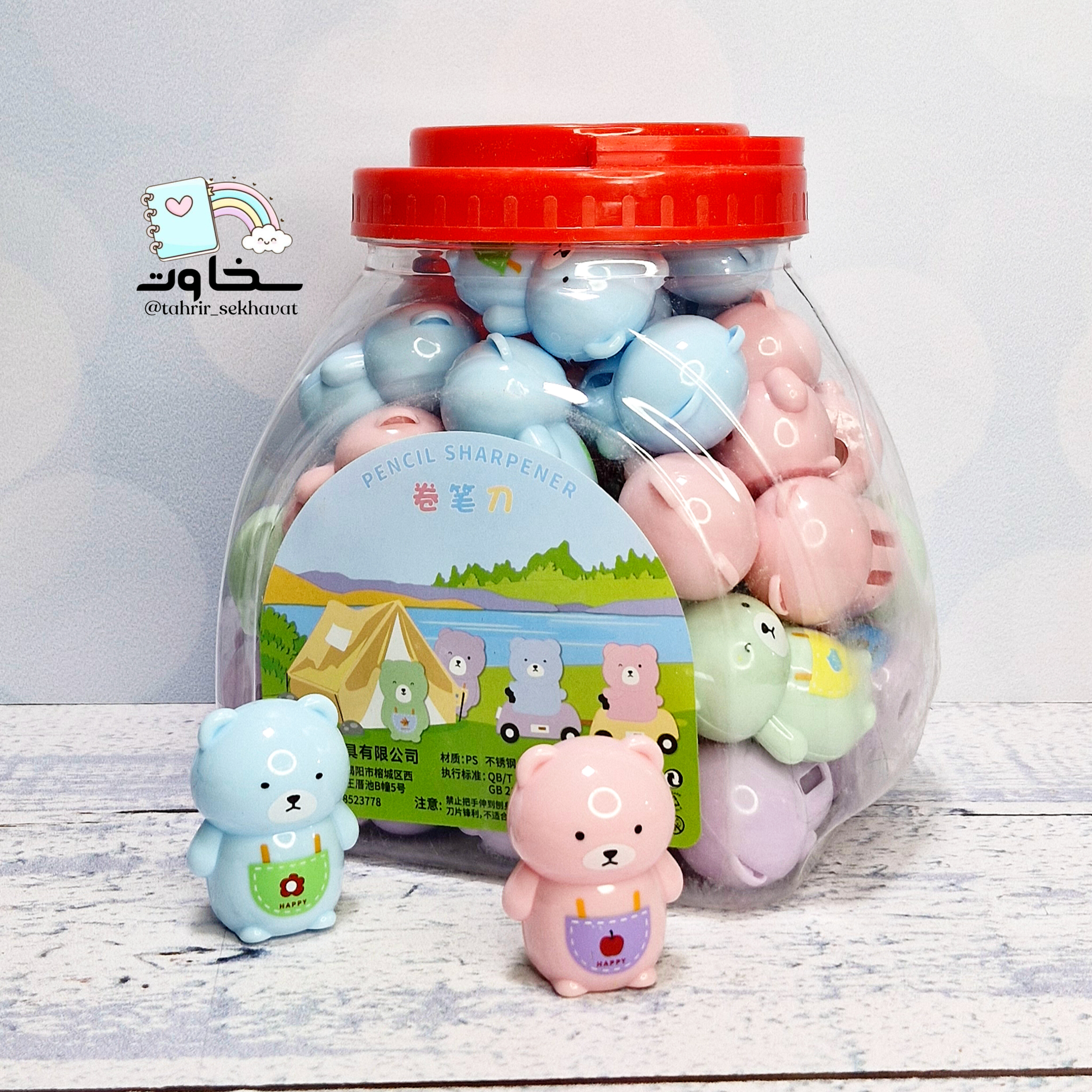 تراش فانتزی مخزندار با طرح خرس بامزه، مناسب برای دانشآموزان. موجود در بسته ۴۸ عددی .