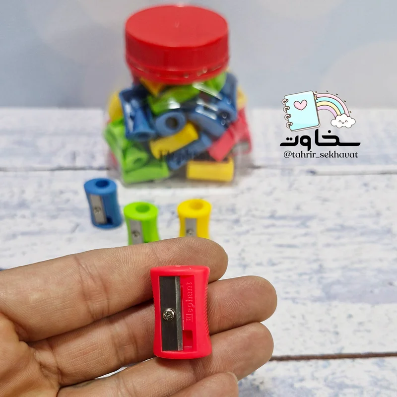 تراش کوچک رنگی و تیز با طراحی ساده و کاربردی، مناسب استفاده روزانه. عرضه در بسته ۴۰ عددی برای خرید عمده.