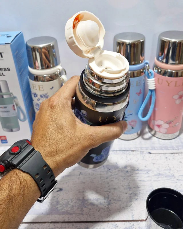 تراول ماگ وارداتی برند AMSZM از جنس استیل ضدزنگ ۳۱۶ با حجم ۵۵۰ میل، دارای بند حمل آسان و طراحی گلدار زیبا. موجود در ۴ طرح و رنگ جذاب، مناسب نگهداری انواع نوشیدنیهای گرم و سرد. حداقل سفارش ۸ عدد.