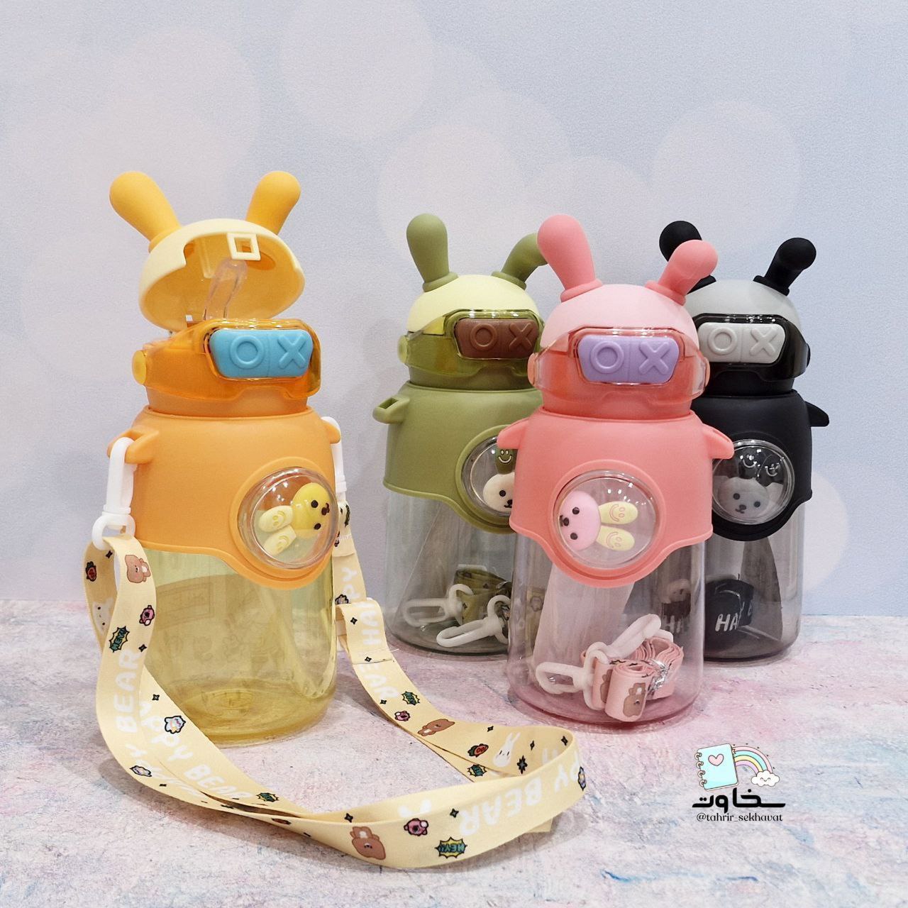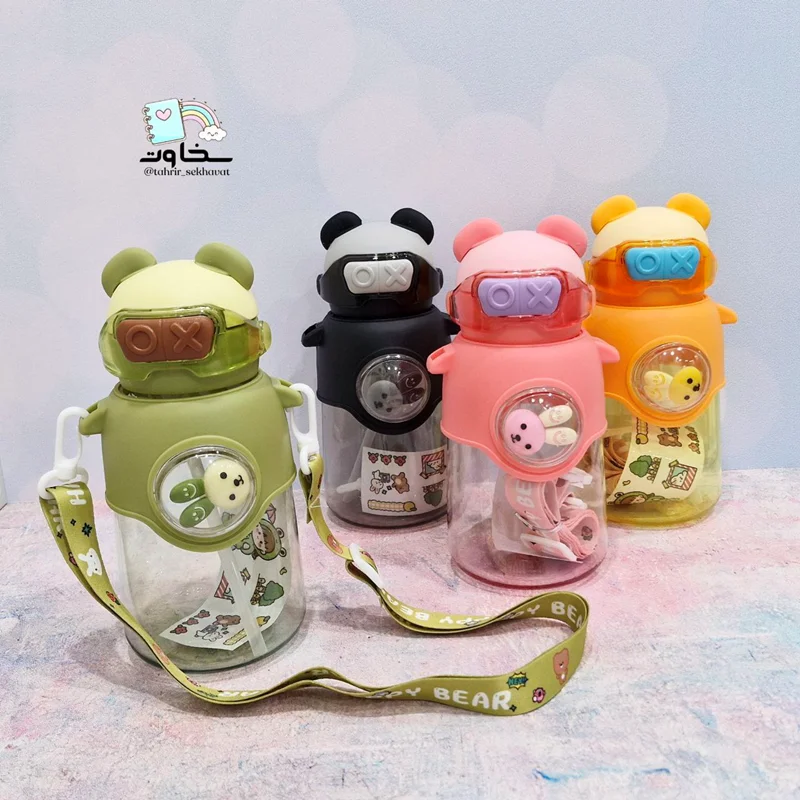قمقمه وارداتی نی دار گنجایش ۷۰۰میل نی دار وارداتی دارای بند آویز و استیکر و گوش سیلیکونی پک ۸عددی .