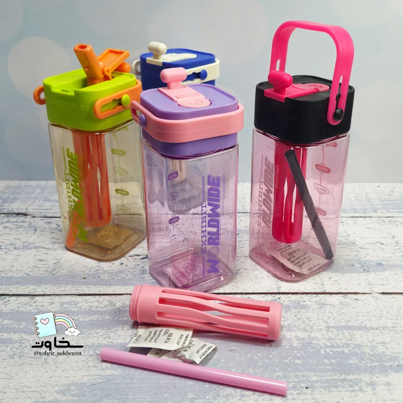 قمقمه وارداتی نی دار با طراحی خاص مربعی شکل ،نی دار ،دارای دسته و جایخی،کیفیت عالی، گنجایش ۶۸۰میل
