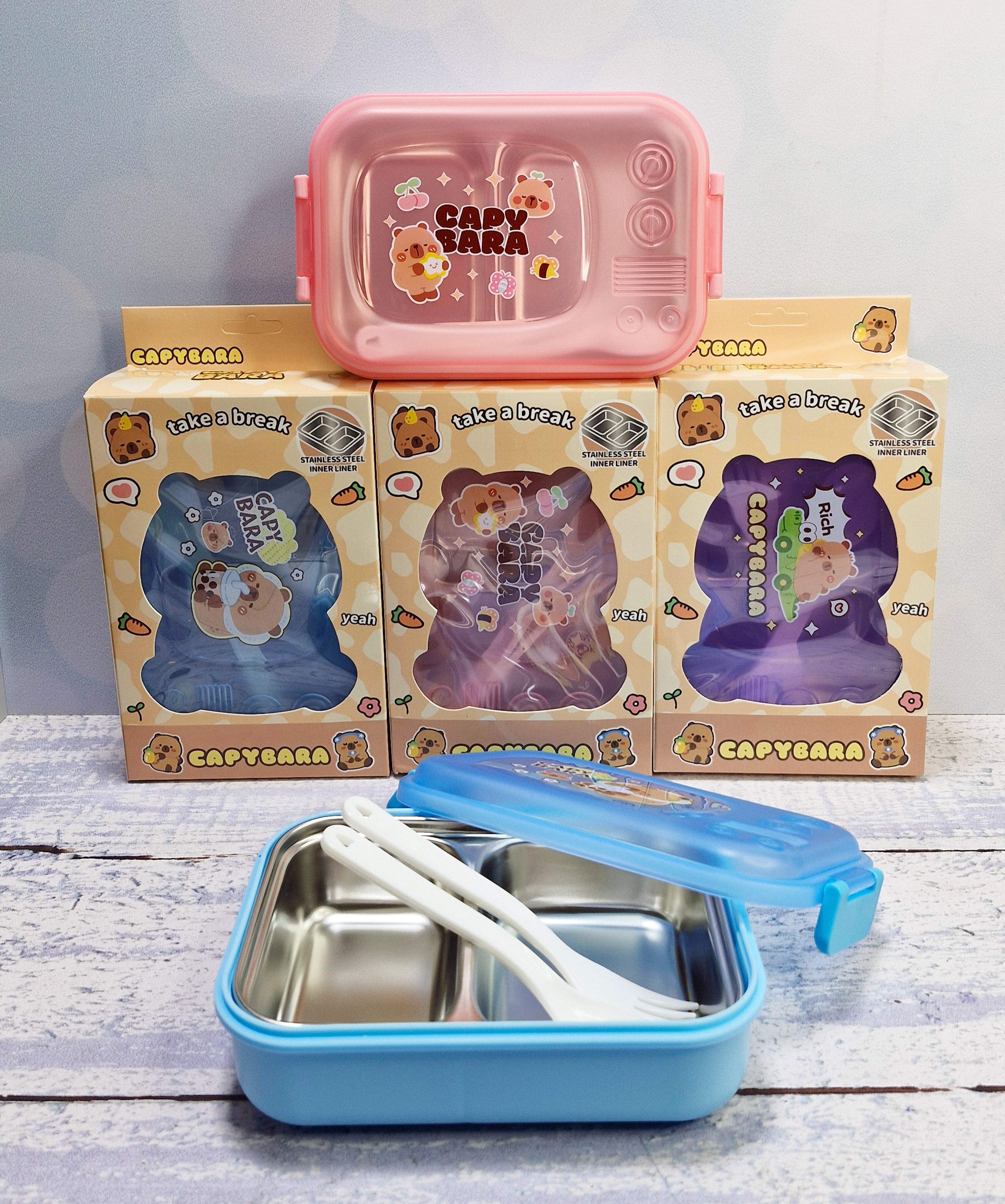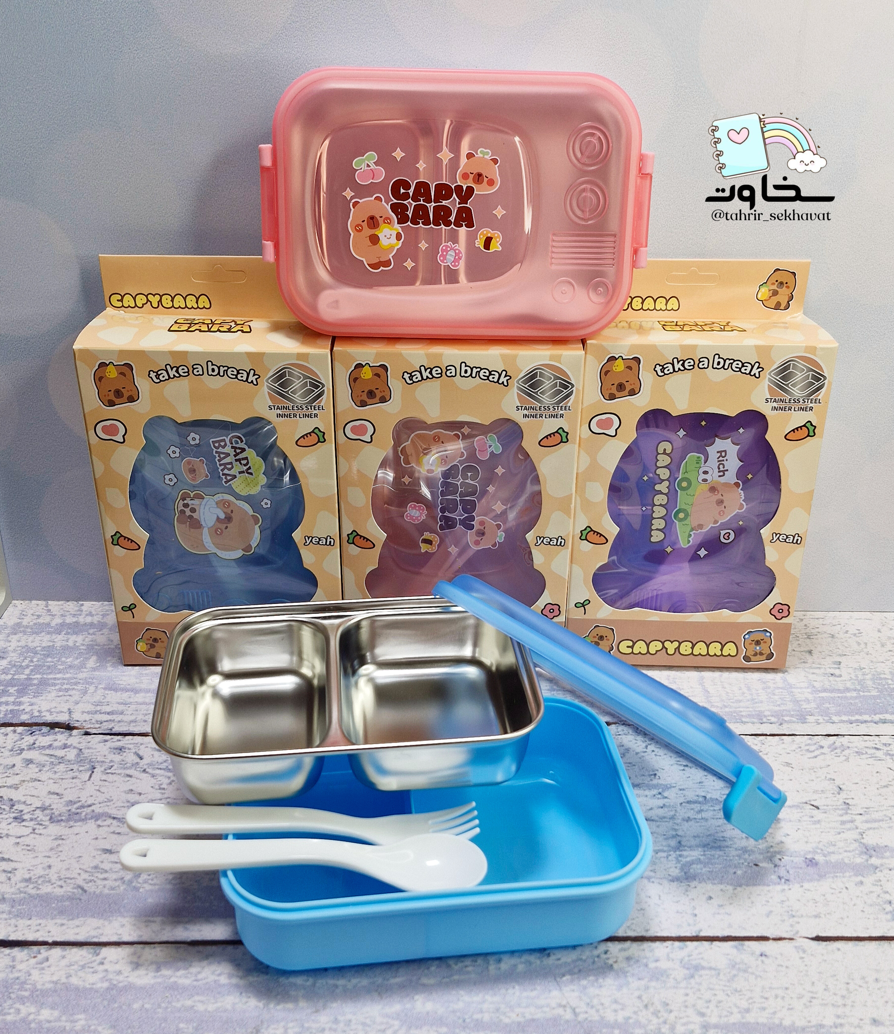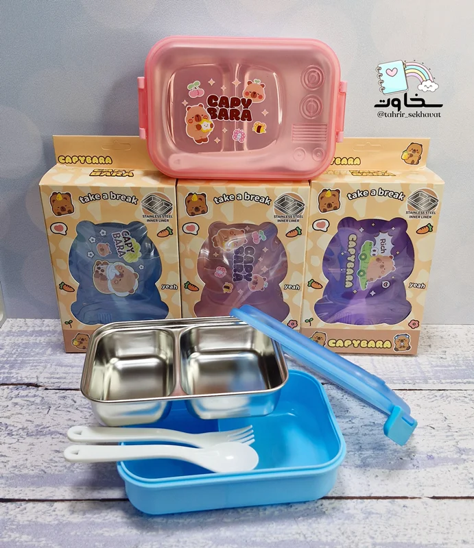 ظرف غذا استیل دو قسمته با طراحی زیبا و بادوام، همراه با قاشق و چنگال مخصوص. این ظرف در بستهبندی جعبهای عرضه میشود و در سه رنگ متنوع موجود است. حداقل سفارش ۶ عدد میباشد. مناسب برای استفاده روزمره و سفر.