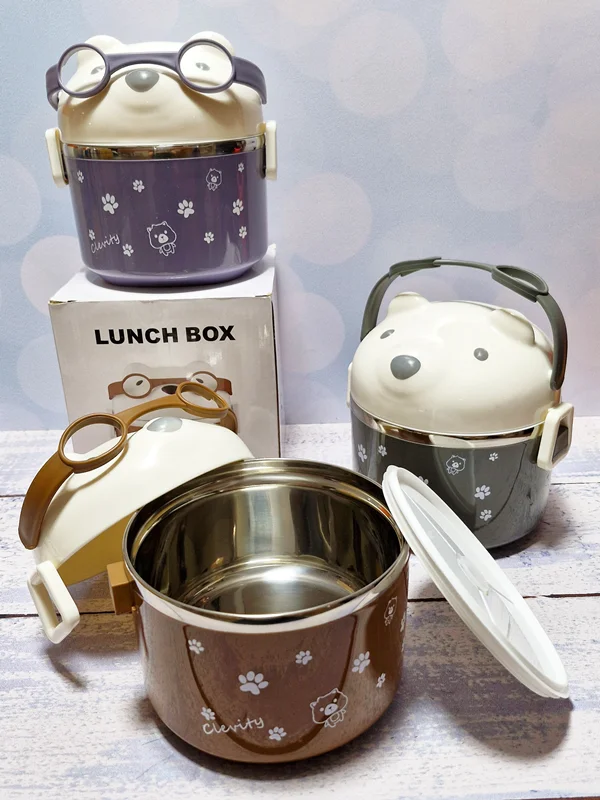 ظرف غذای وارداتی با طراحی عروسکی خرسی، مناسب برای کودکان و نوجوانان. این ظرف دارای دسته مقاوم، سوپاپ هوا برای خروج بخار، و محفظه داخلی از جنس استیل باکیفیت است که باعث حفظ دمای غذا و جلوگیری از تغییر طعم میشود. بسته شامل ۶ عدد ظرف غذا در ۳ رنگ جذاب و متنوع، هرکدام با جعبه مجزا، ایدهآل برای مدرسه، سفر یا هدیه دادن.
